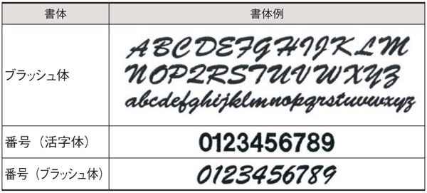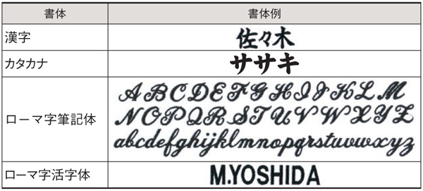 ※ローマ字筆記体、ブラッシュ体は、頭文字のみ大文字となります。